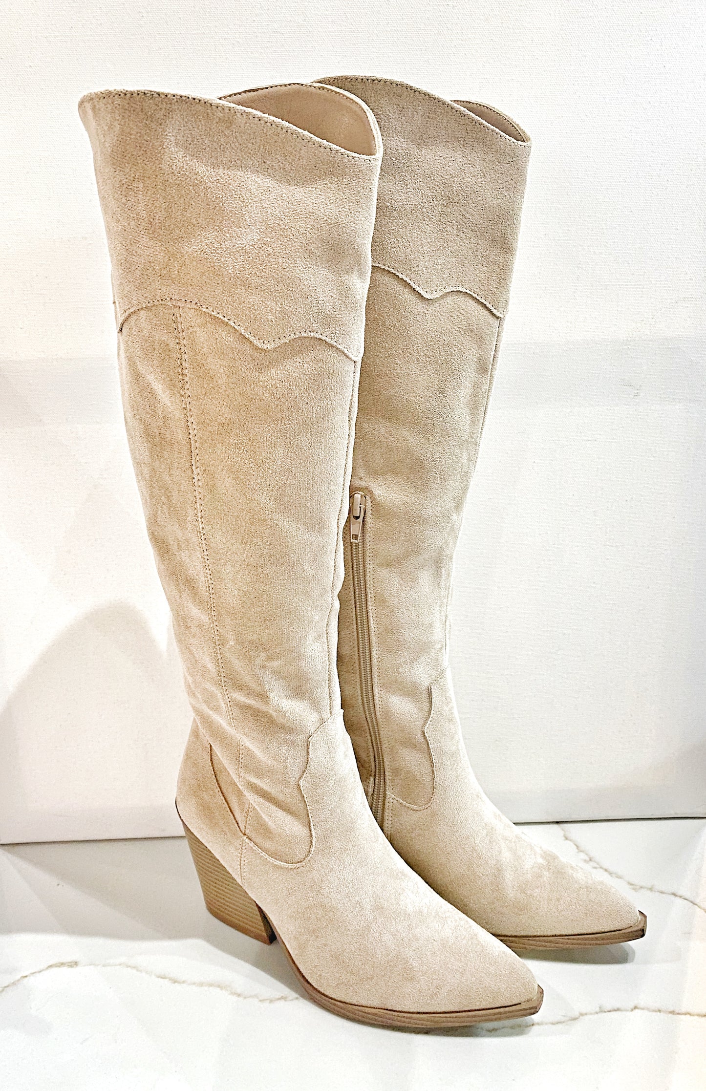 Experience unparalleled style and comfort with our Buxton Tall Pointed Toe Boots. Crafted in luxurious suede beige, these boots feature a high pointed toe and a sleek heel for a sophisticated look. The pull on loops and inside zipper make them easy to slip on and off. Elevate any outfit with these timeless and versatile boots.