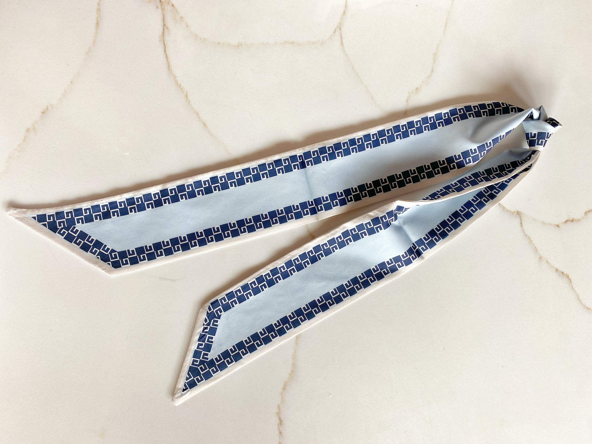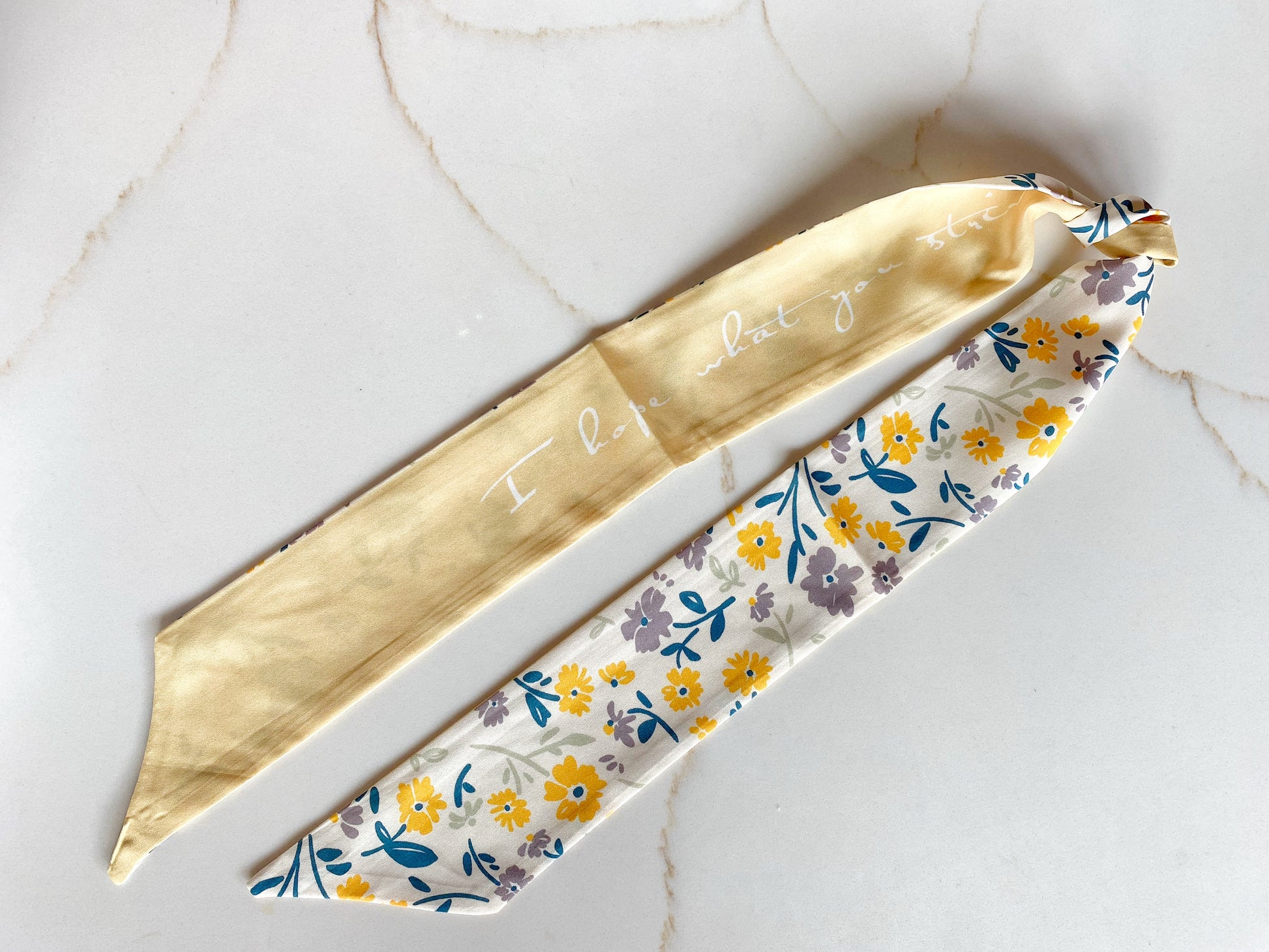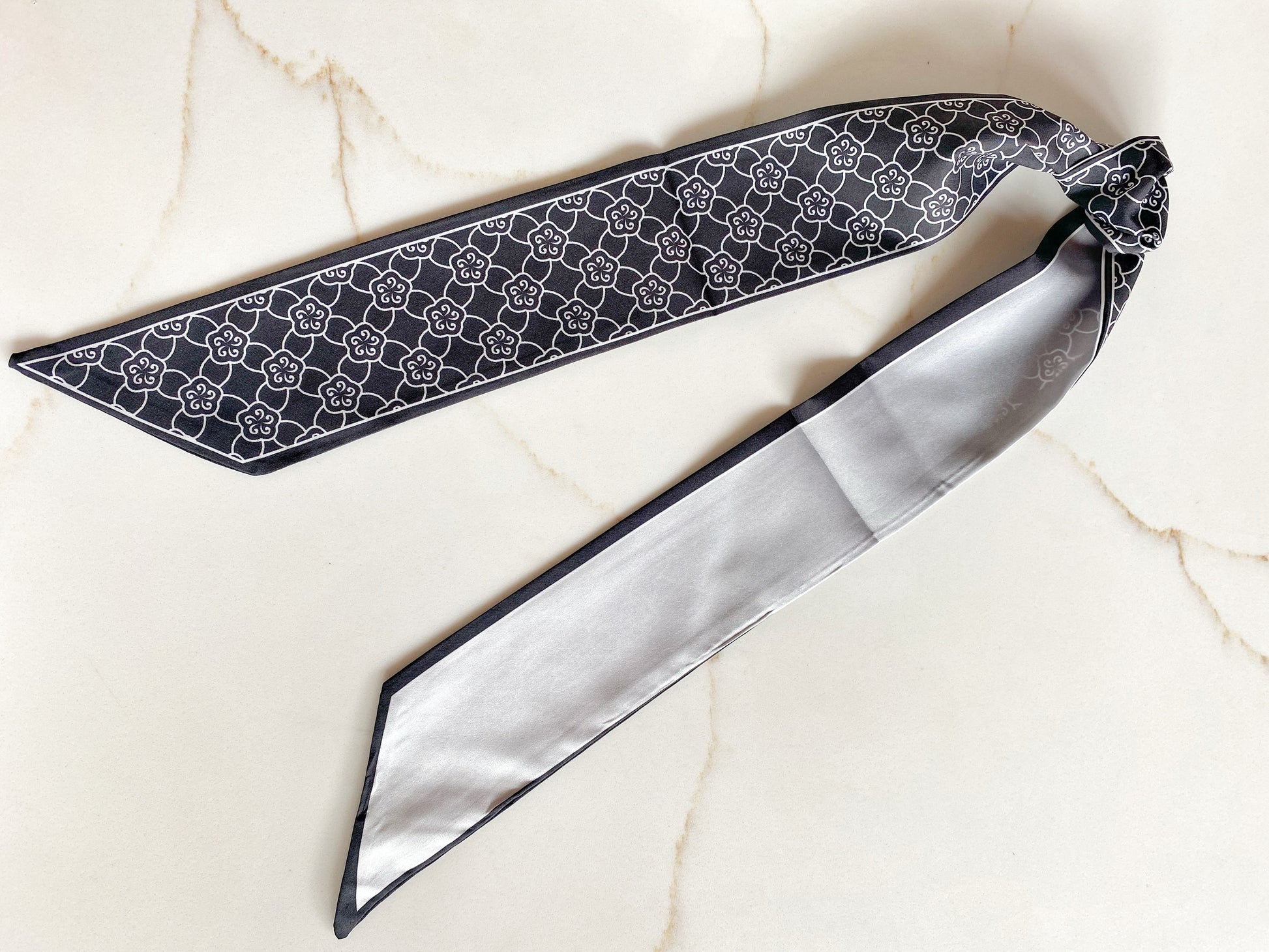 This Jada Scarf Tie is a versatile accessory that adds a touch of elegance to any look. Made from high-quality, silky material, it can be styled in various ways - as a hair accessory, to decorate a handbag, or as a fashionable neck scarf. Elevate your outfit with this cute and stylish addition.