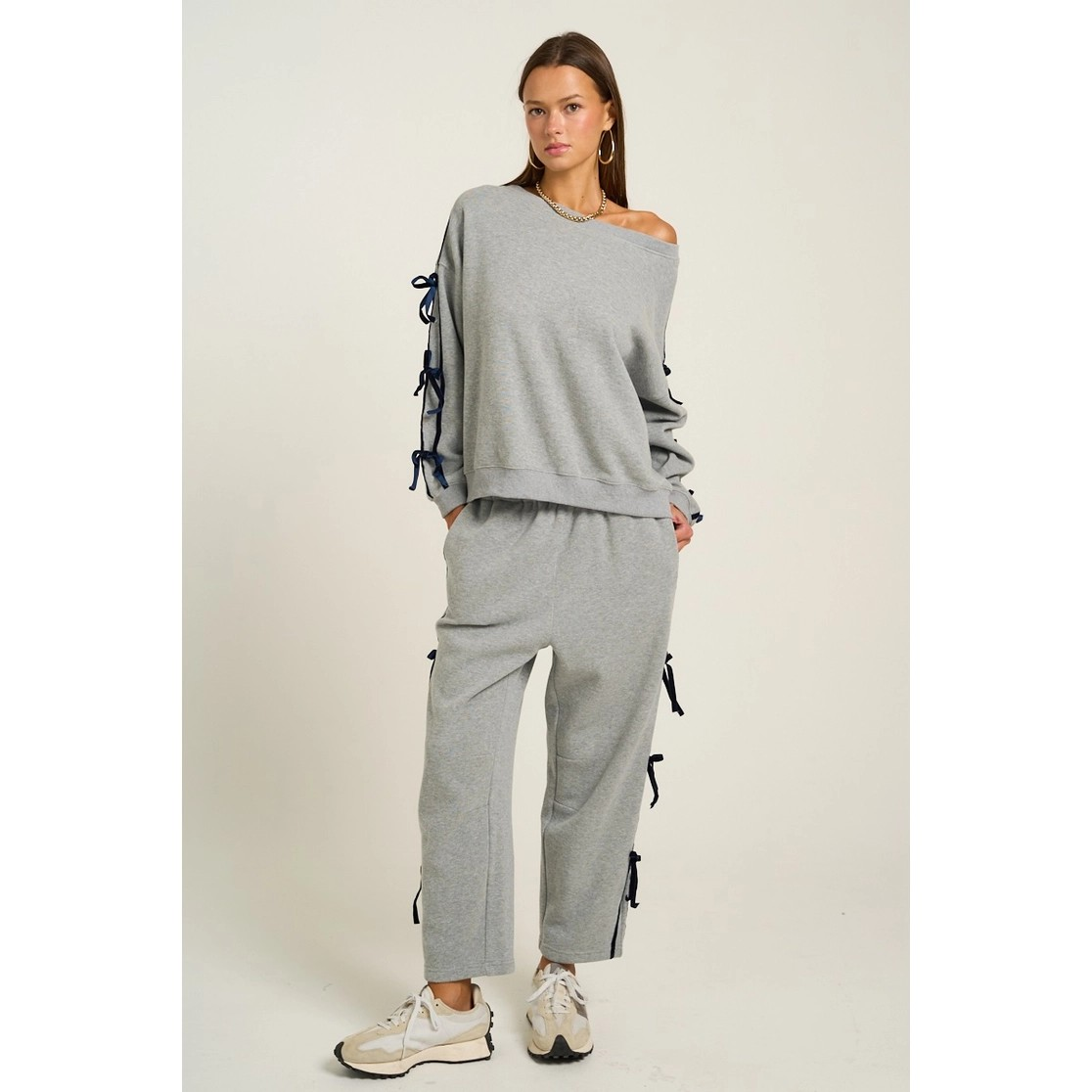 Introducing the Meet Me There Bow Pants – your ultimate comfort companion. Made with a navy velvet trim and bows, these lounge pants elevate your loungewear game. The elastic waist ensures a perfect fit, while the heather grey color adds a touch of sophistication. Ideal for relaxing at home or running errands in style.