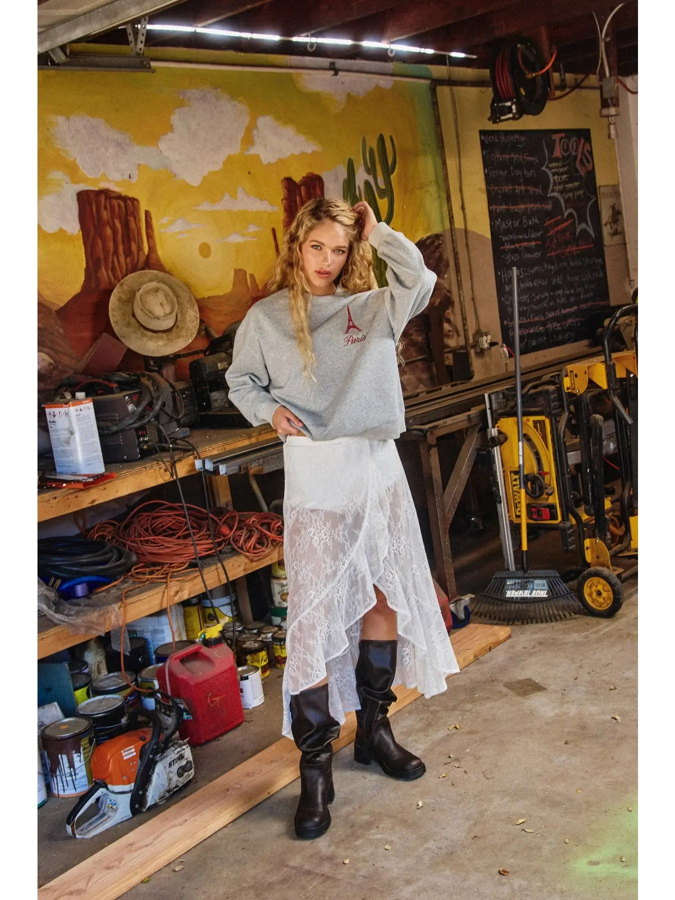 This ruffled sheer lace skirt is perfect for playing hard. It features a comfortable elastic waist and a boyshort lining for added coverage. The lightweight fabric allows for easy movement, making it ideal for active lifestyles. Stay stylish and comfortable in this versatile skirt.