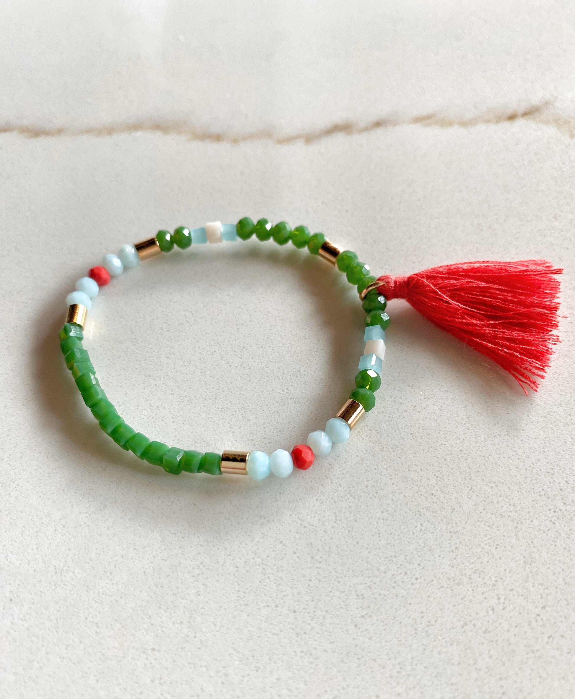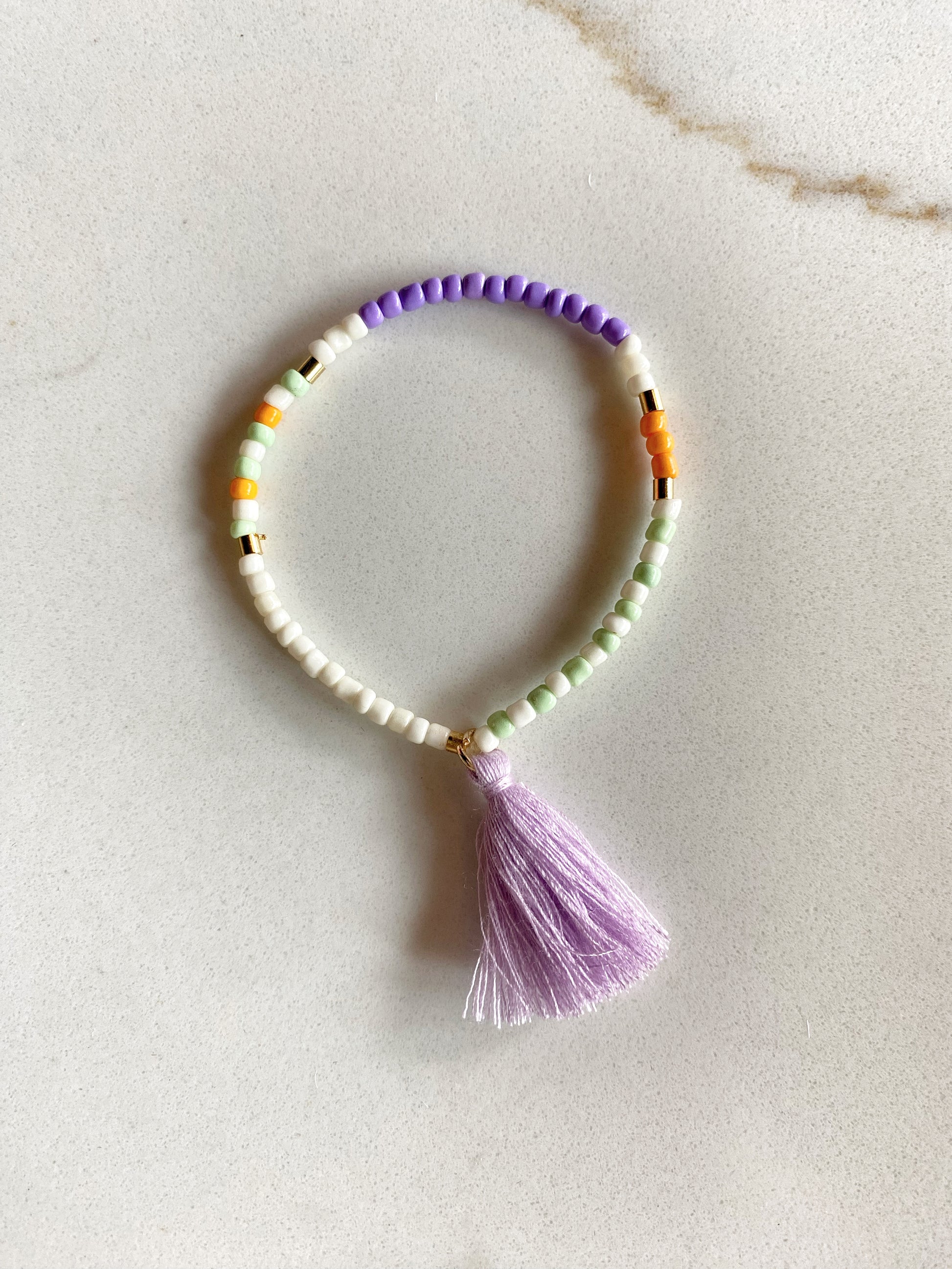 Crafted with colorful glass beads, our tassel stacking bracelets add a playful touch to any outfit. These stretch bracelets are perfect for easy, everyday wear.